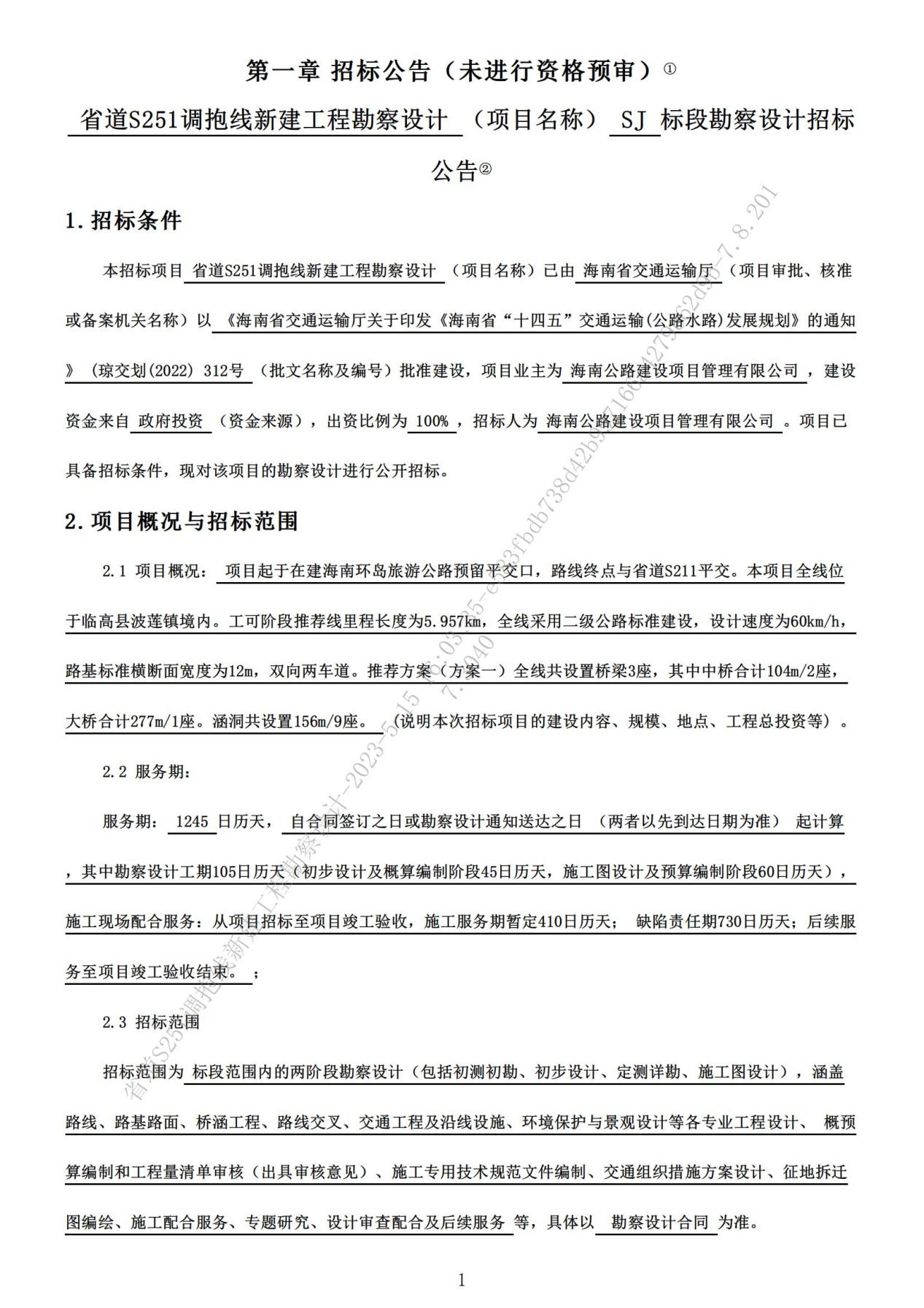 省道S251調(diào)抱線新建工程勘察設(shè)計招標(biāo)公告